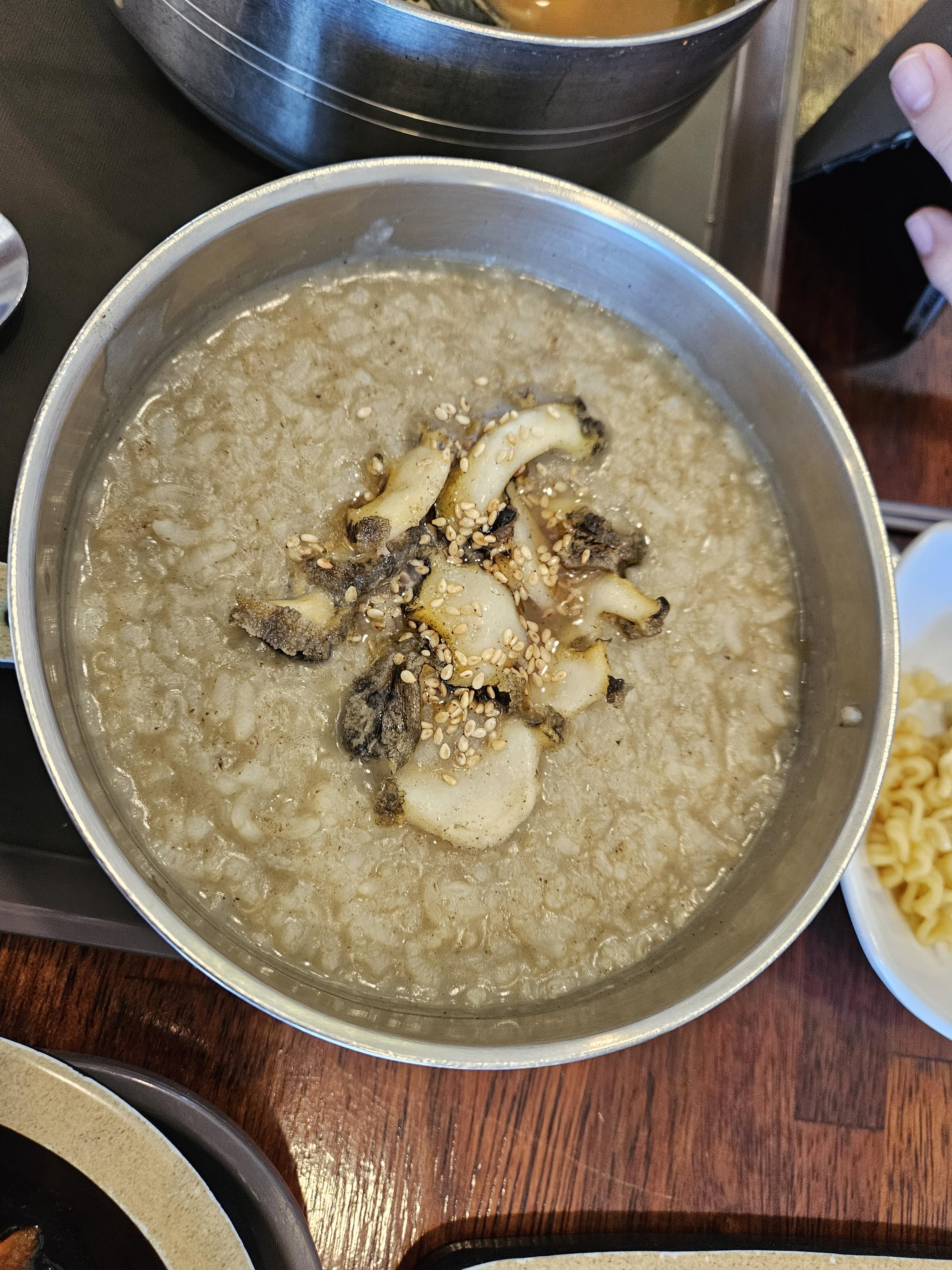 어른 2 아이 2 기준 라면 2개 김밥 1개 전복죽 또는 전복밥 1 그리고 오징어 초무침(빈찬용) 주문이 적당합니다.