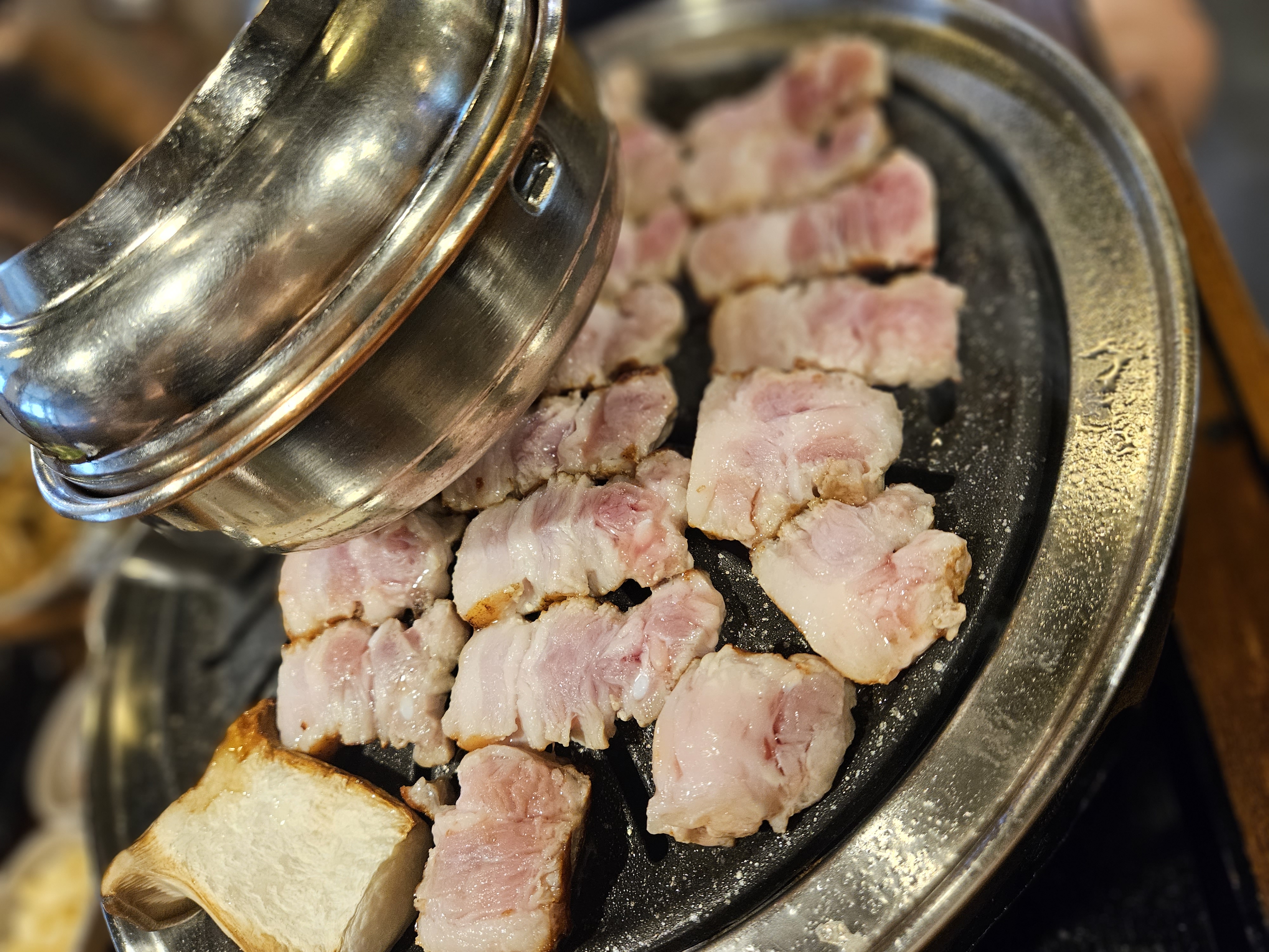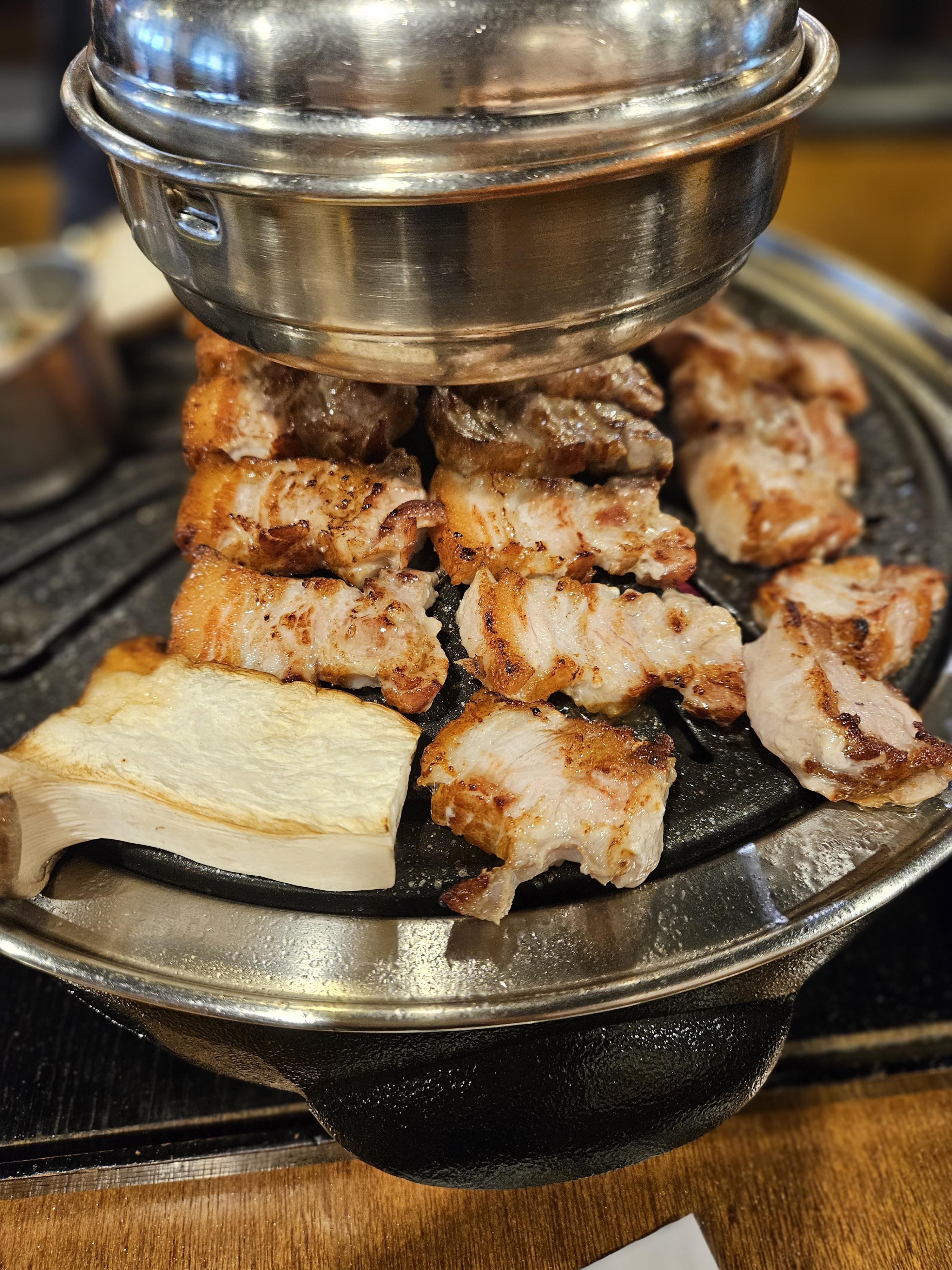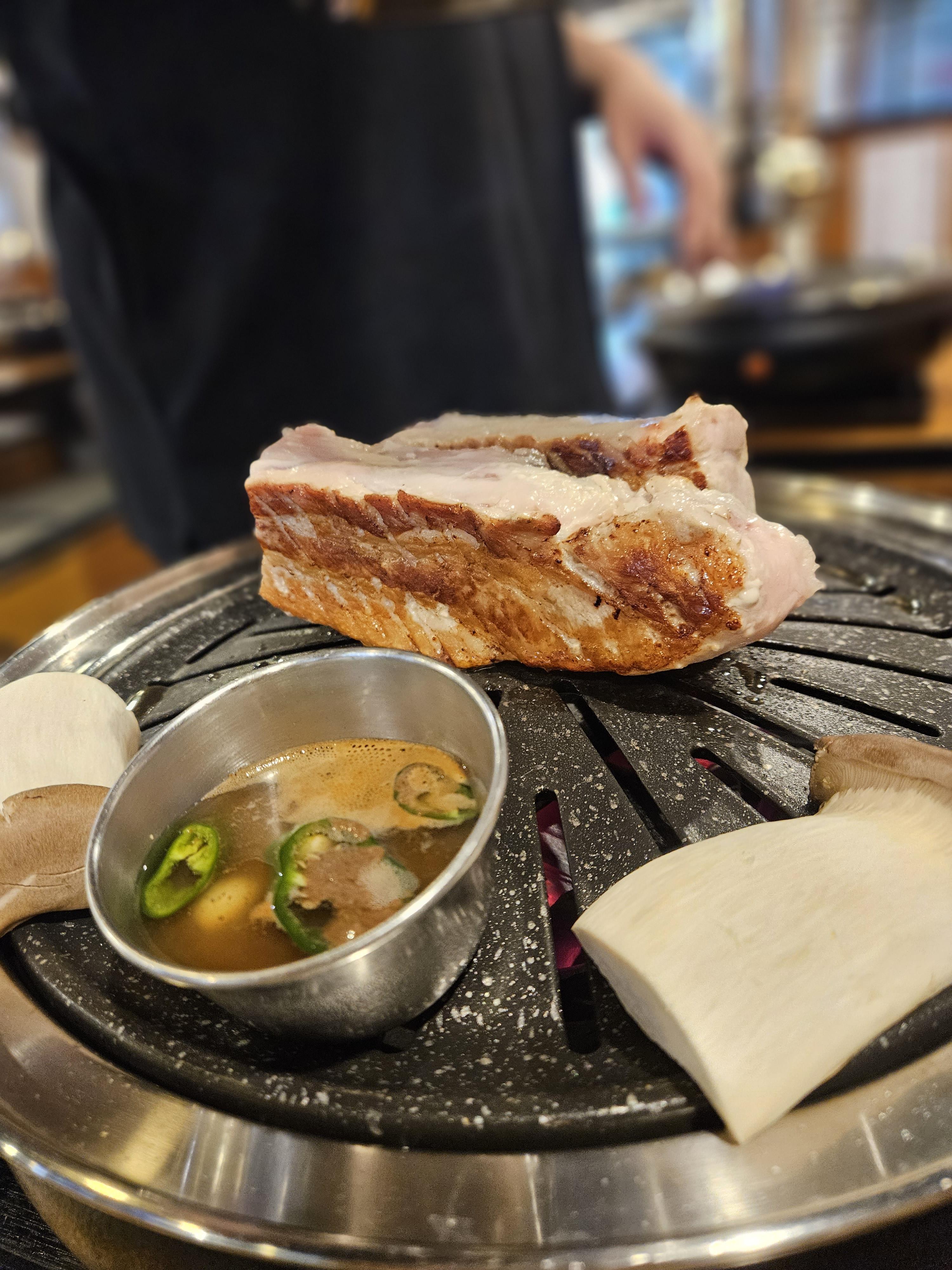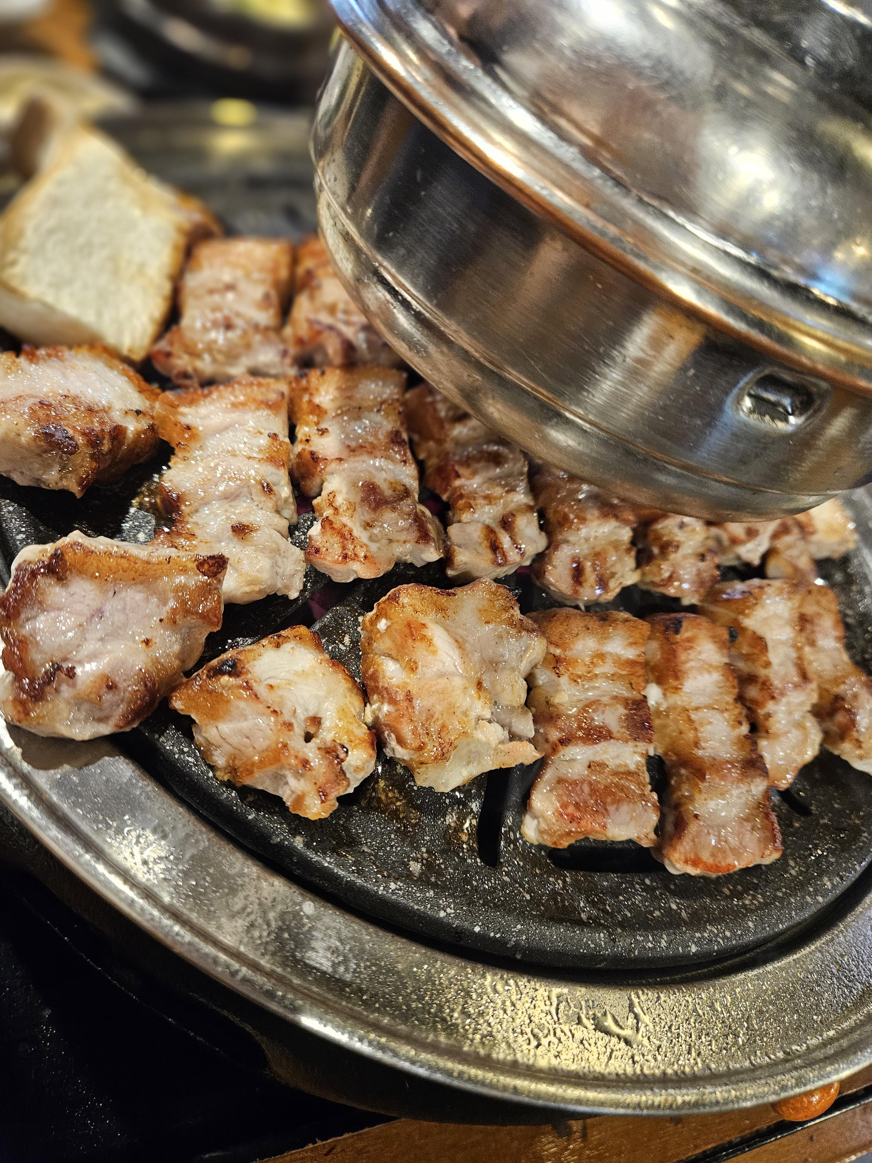 고기를 직접 구워주며, 평촌 학원가 먹거리 골목 내에 위치해 접근성이 뛰어남