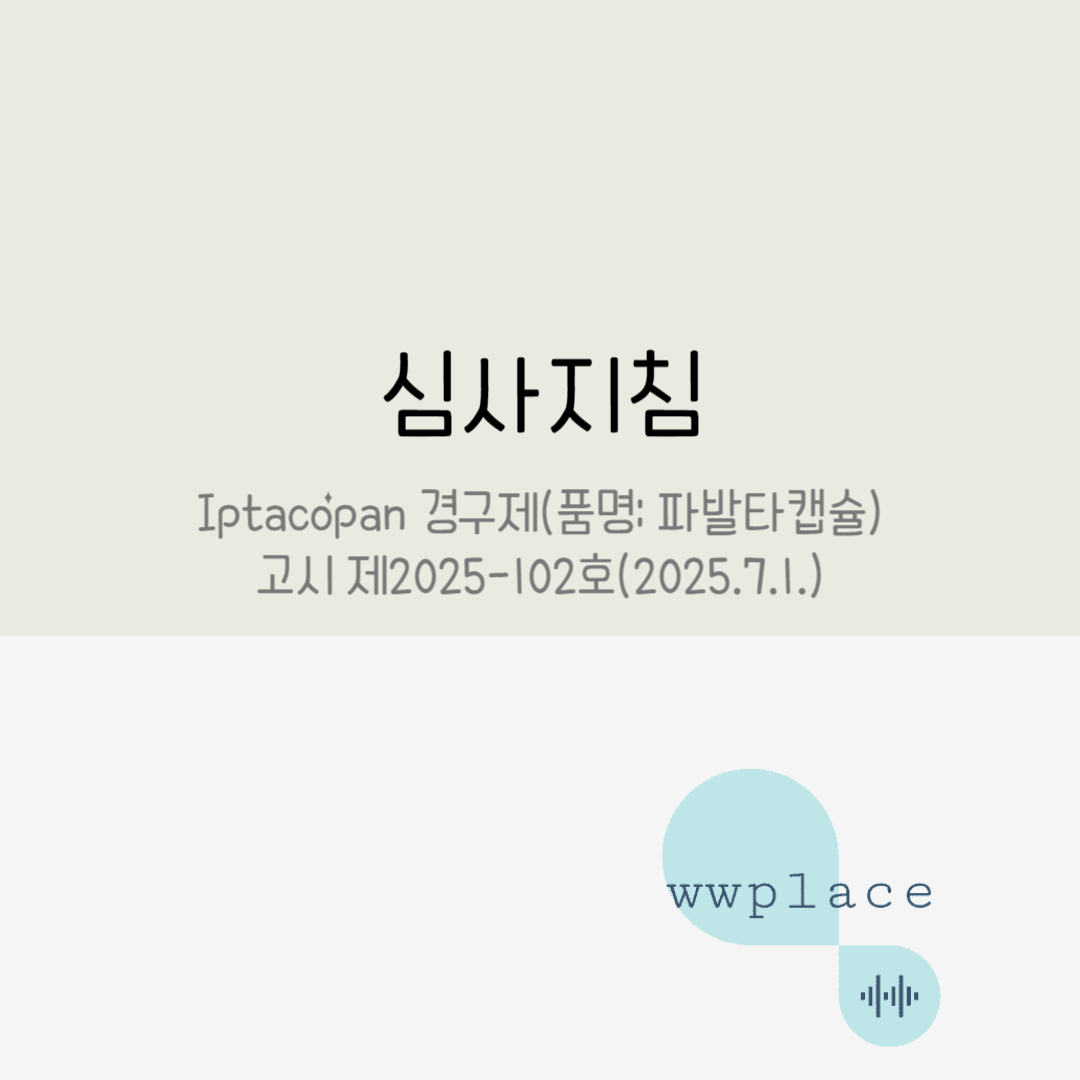 | [약제]Iptacopan 경구제(품명: 파발타캡슐)고시 제2025-102호(2025.7.1.) (2) | 2025.07.07 |
