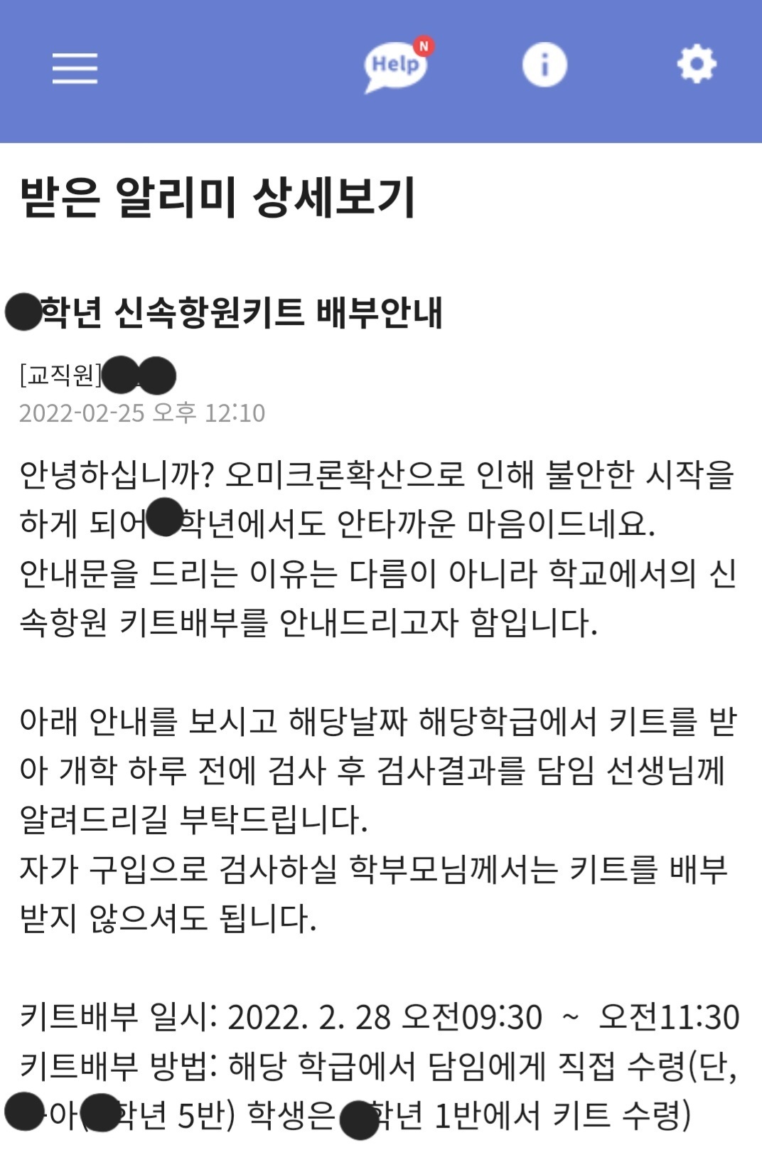 우선 학교 공지는 2월28일 키트를 수령하라는 공지가 도착했습니다.