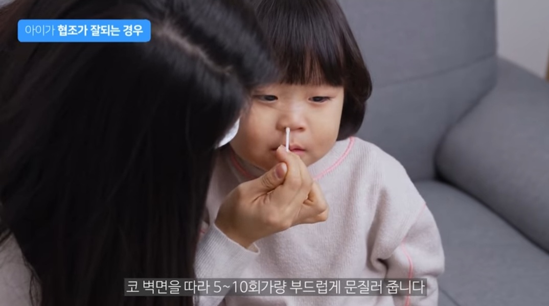 코 벽면을 따라 5~10회가량 부드럽게 문질러 줍니다.