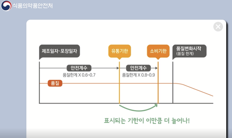 따라서, 소비기한 = 품질유지기한 X 안전계수(0.8~0.9) 을 사용하면 음식물 쓰레기를 줄일 수 있죠.