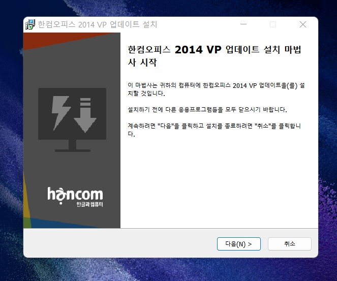 그리고 한글과 컴퓨터 홈페이지로 들어가 최신 패치를 내 한글 프로그램 버전에 맞게 다운로드했다.