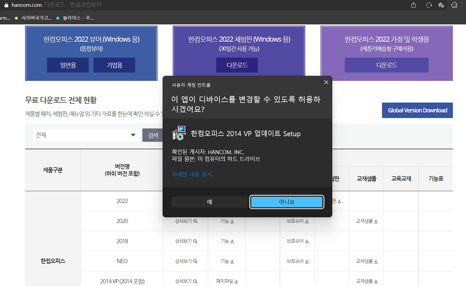 한컴 홈페이지를 방문해 다운로드 페이지에서 망설임 없이 다운로드하니, 생각보다 쉽게 해결이 되었다.
