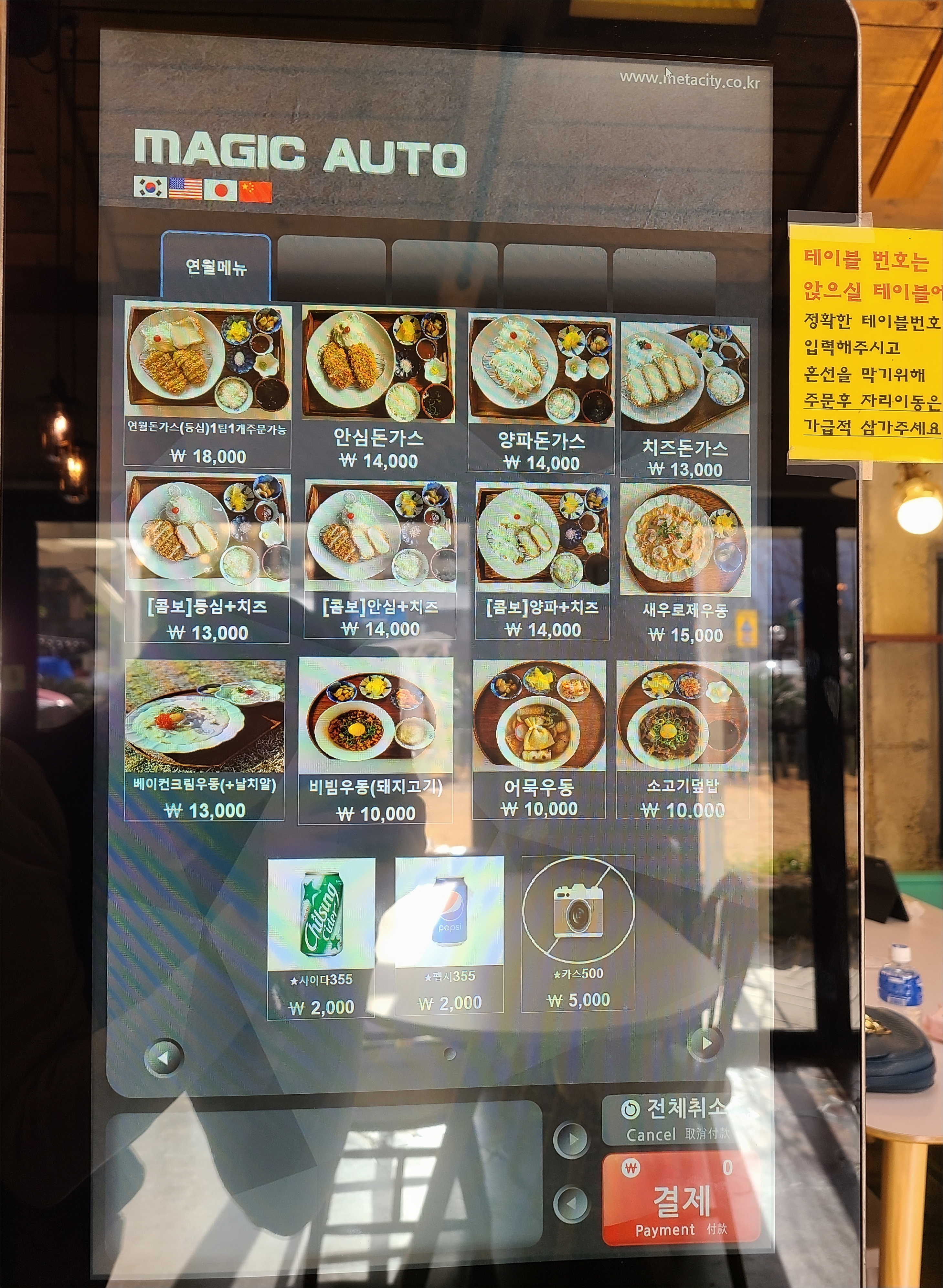 키오스크를 보면 메인 메뉴는 연월 치즈돈가스라는 것을 단번에 알게 된다.