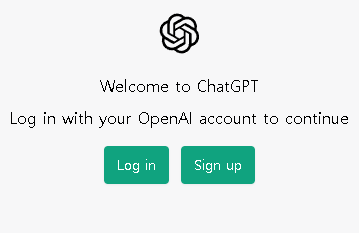 'Welcome to ChatGPT' Sign up 회원가입 후에 Log in 로그인을 하시면 됩니다.