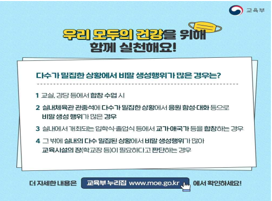 또한 수업 중 환기, 소독, 유증상자 일시적 관찰실 운영 등 기본적인 방역 조치는 유지됩니다.