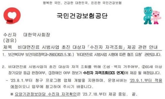 ** 비대면진료 시범사업 초진 대상자 자격조회와 수진자 자격조회(OCS) 연계