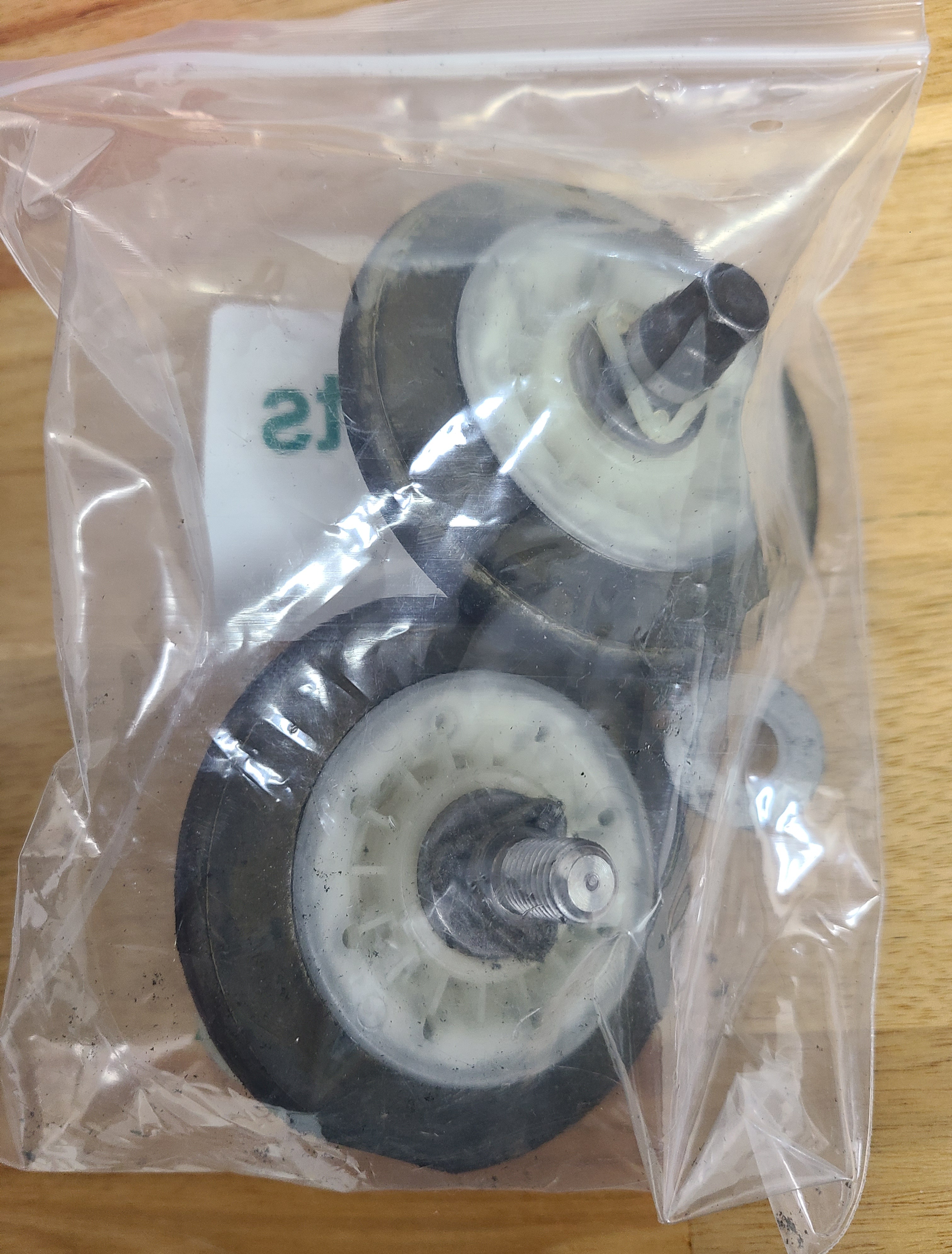 기사님 두 분이 함께 오셔서 직렬 상태인 건조기를 상단에서 내린 후 분해작업을 하시고 건조기 통 아래에 있는 바퀴같이 생긴 것 2개를 꺼내어 새것으로 교체해 주셨습니다.