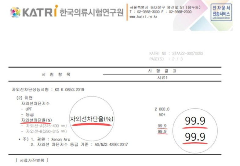 면, 마가 40% 이상인 원단, 자수원단, 번아웃 원단 등은 적용하지 않을 수 있고, 자외선 차단율을 표시해야만 합니다.